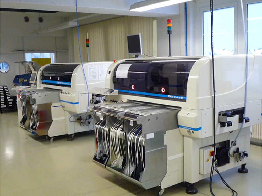 Es steht modernste Technik zur Verfügung wie Pastendruck mit 3D Überwachung, Dispensern, SMD-Produktion auf Insellösungen oder einer Fertigungslinie mit Bestückung bis zu einer Baugruppengröße von 1000x600mm, Reflow oder Dampfphasenlöten, Ersascope, AOI, THT-Bestückung, Mikroskop Löten, Schwalllöten, Vergießen, Burn in, Kalibrieren, Kabelkonfektion, Boundary Scan.