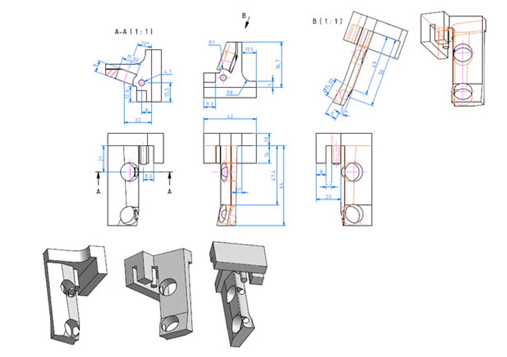 Zeichnung und 3D-Visualisierung einer Bohrlehre